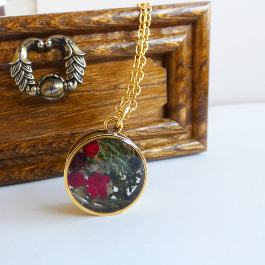 The necklace is made with real Texas Bluebonnet flowers and blue Czech glass beads.