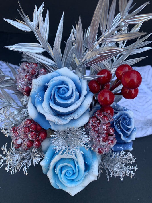 Blue Christmas magic soap flowers arrangement arr