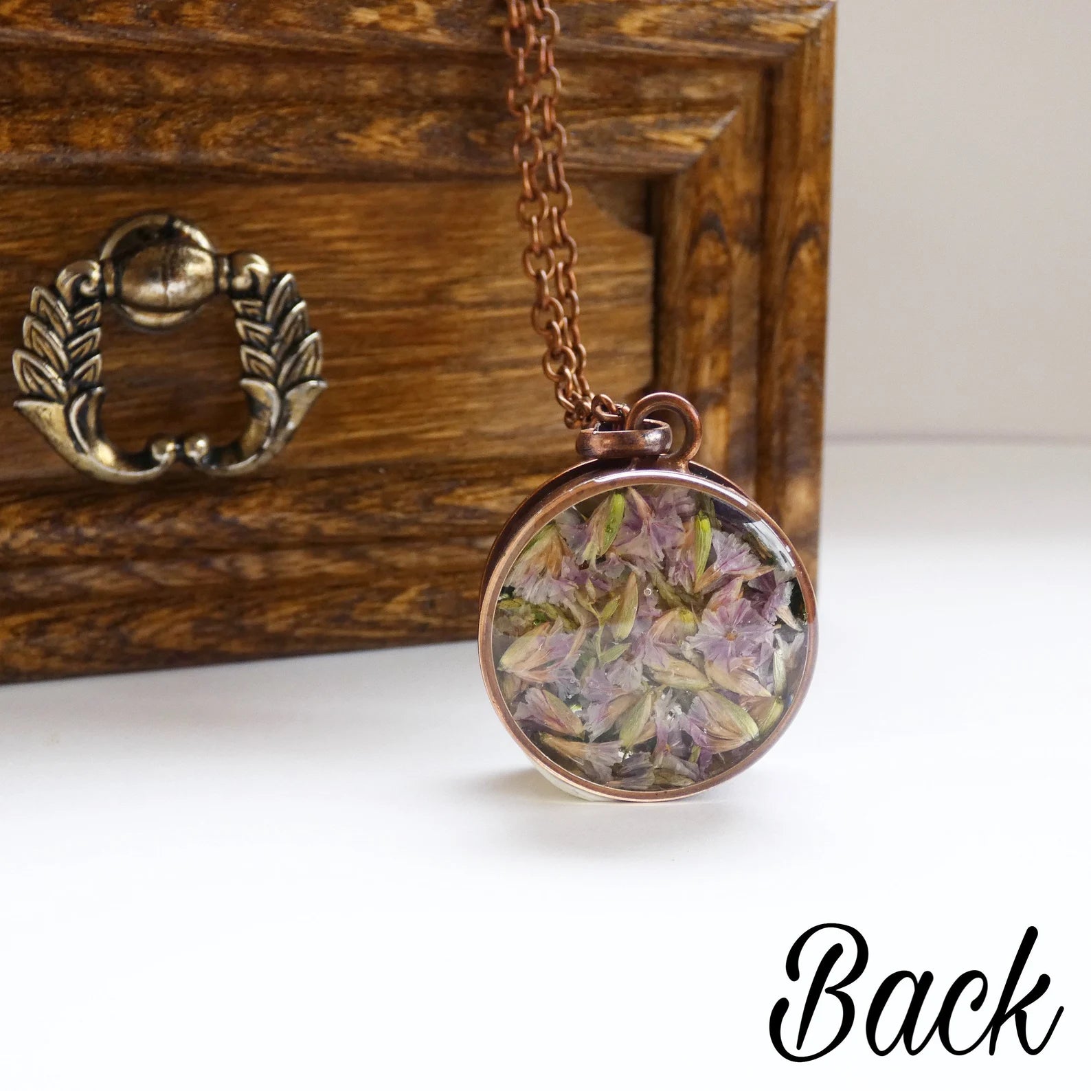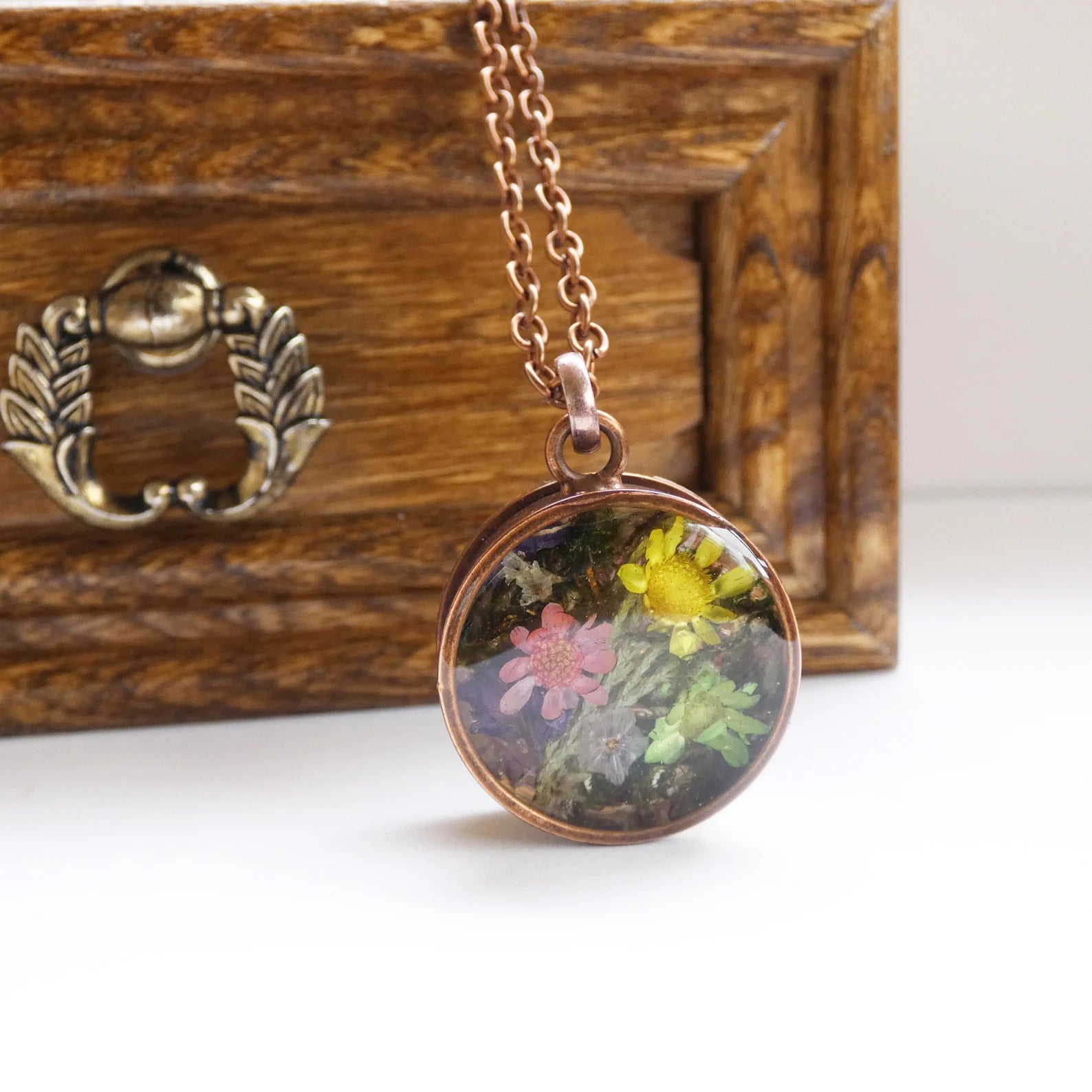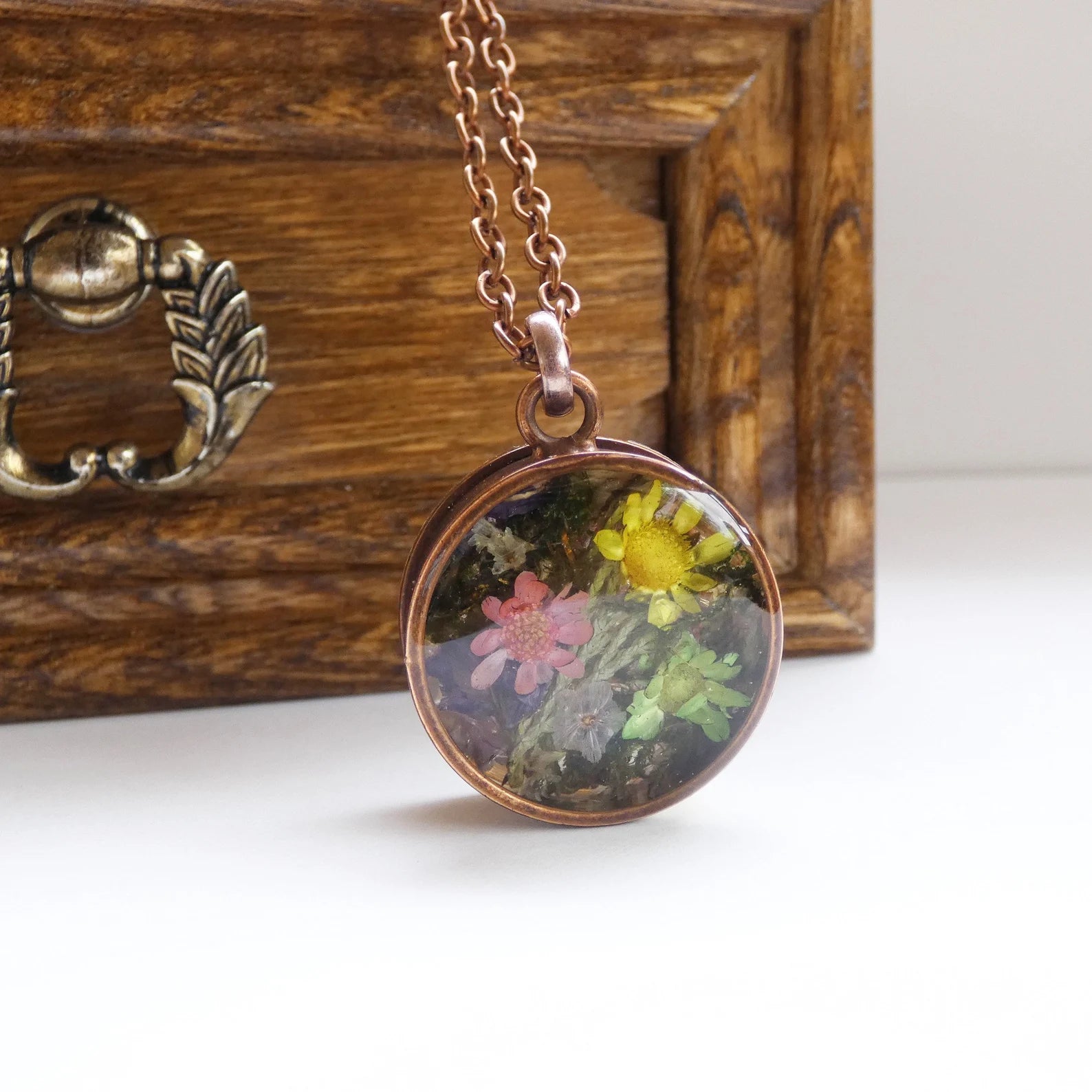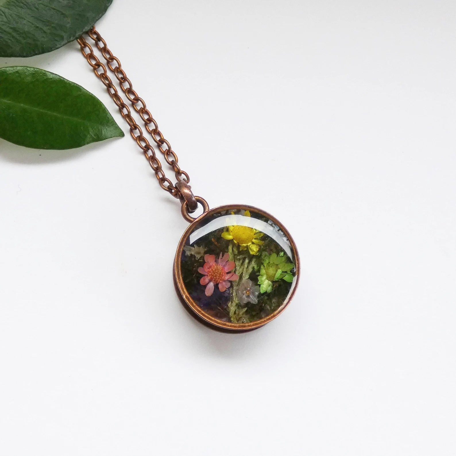 Тwo seided necklace, Pressed flowers necklace, Moss necklace