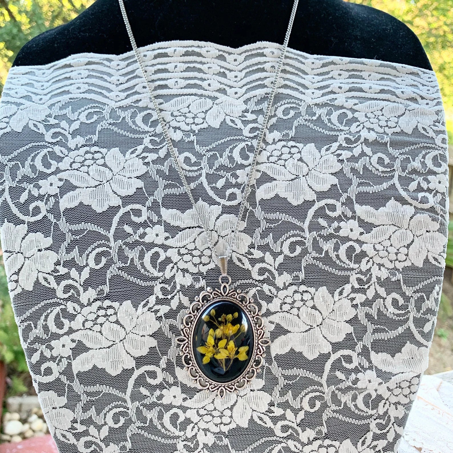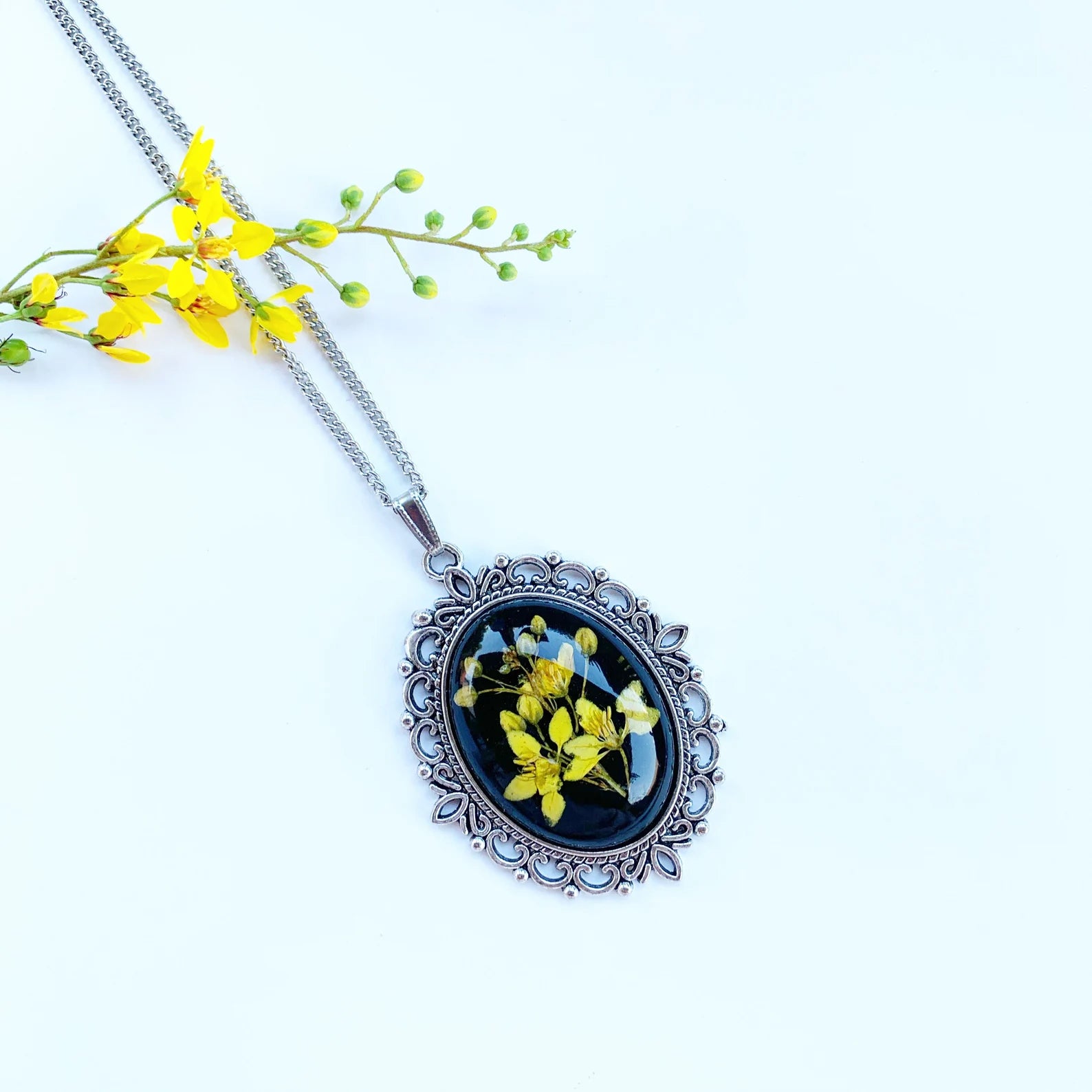 Real flower necklace, Spray of Gold necklace, real Galphimia Cracilis necklace, Botanical jewelry, Victorian necklace