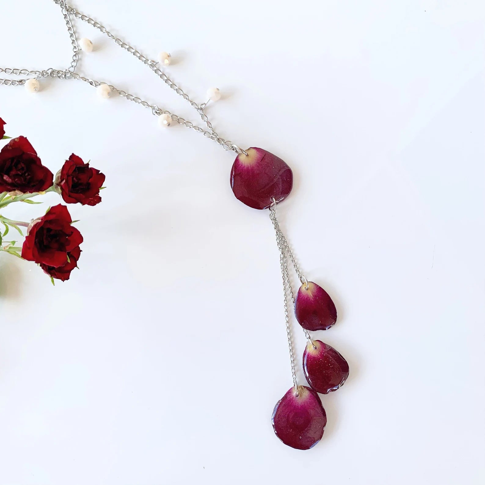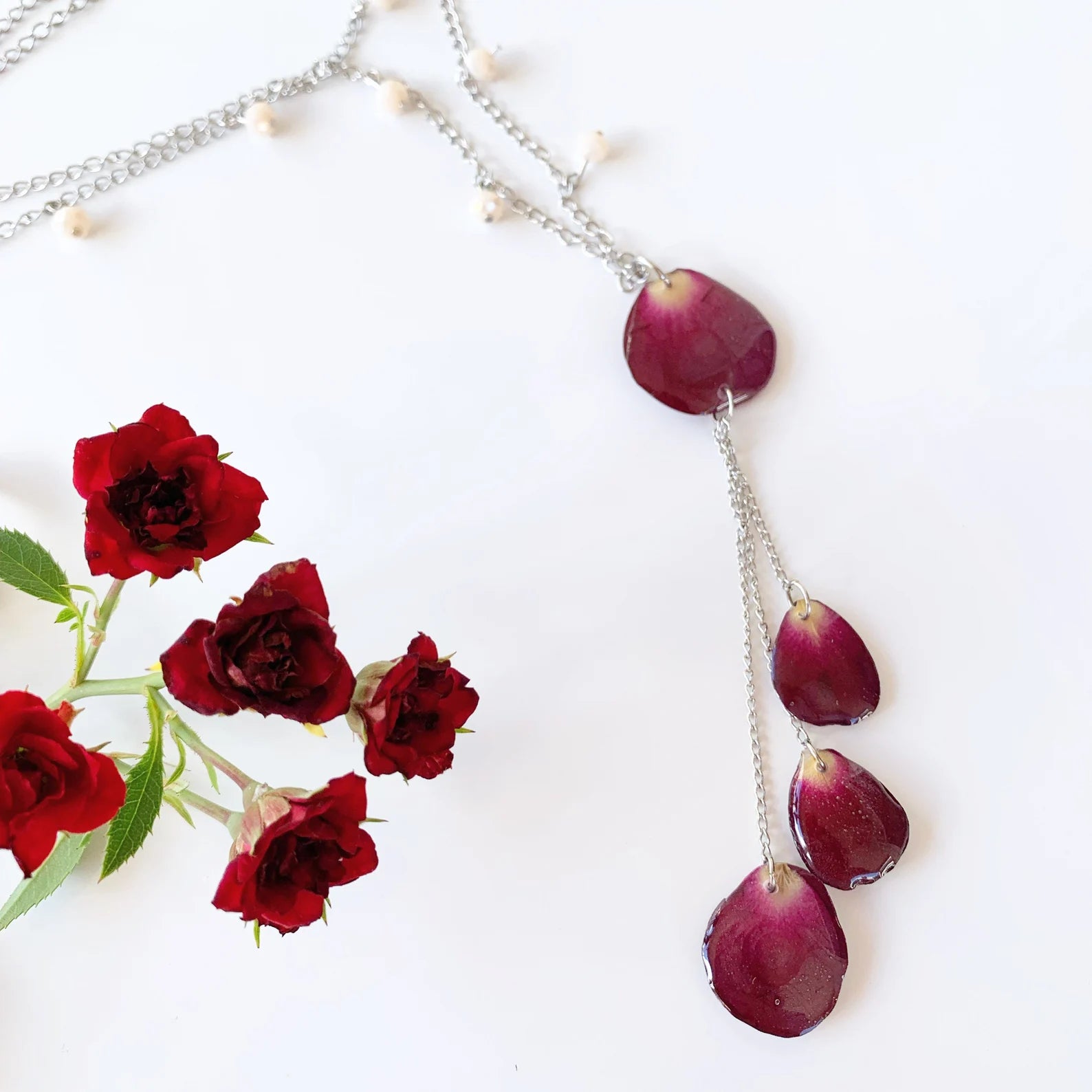 - This beautiful necklace is made with delicate real rose petals, decorated with Czech crystals.