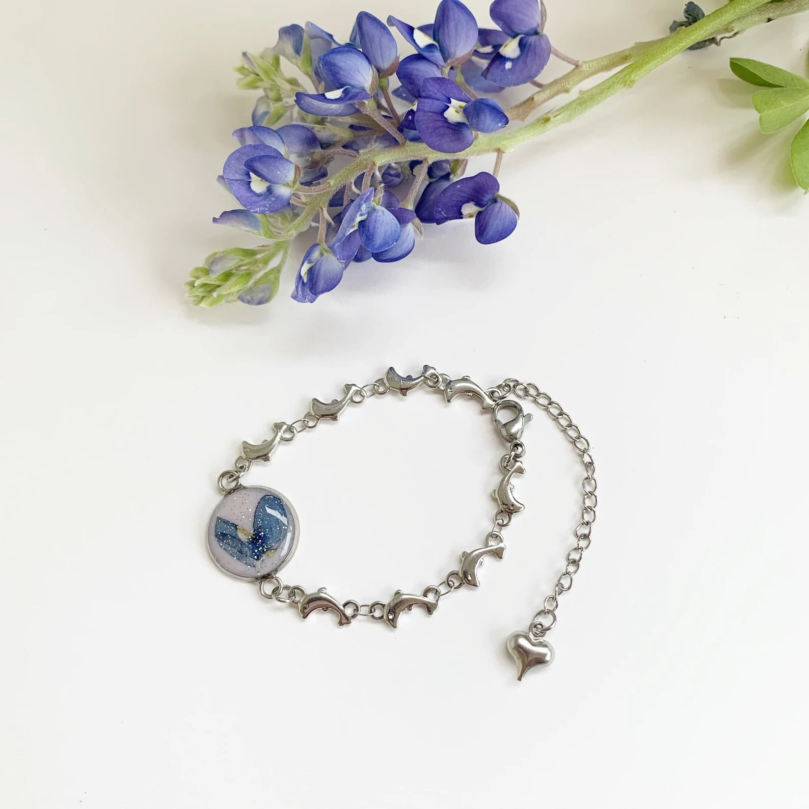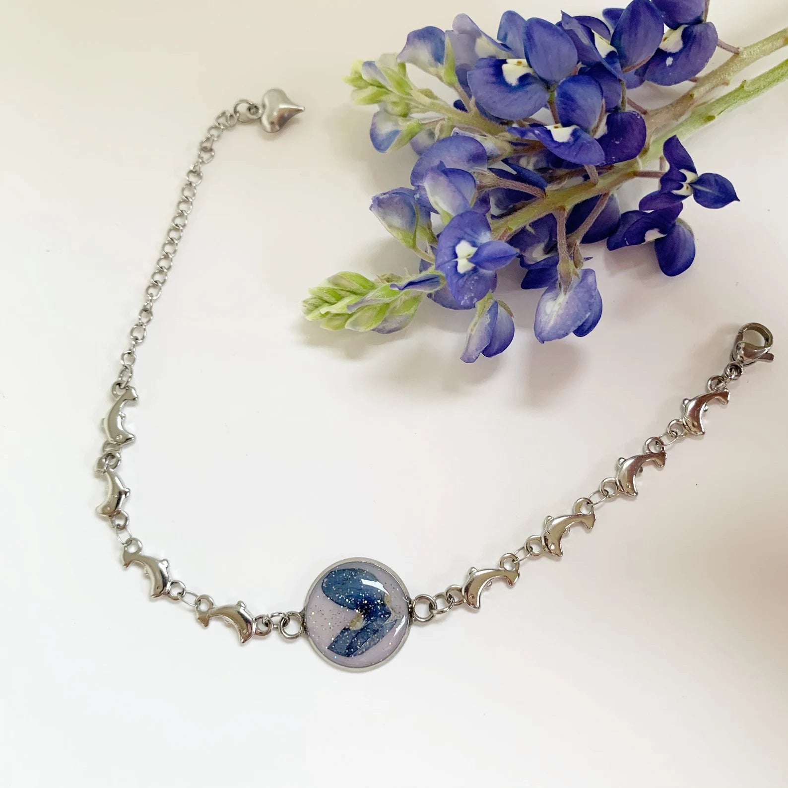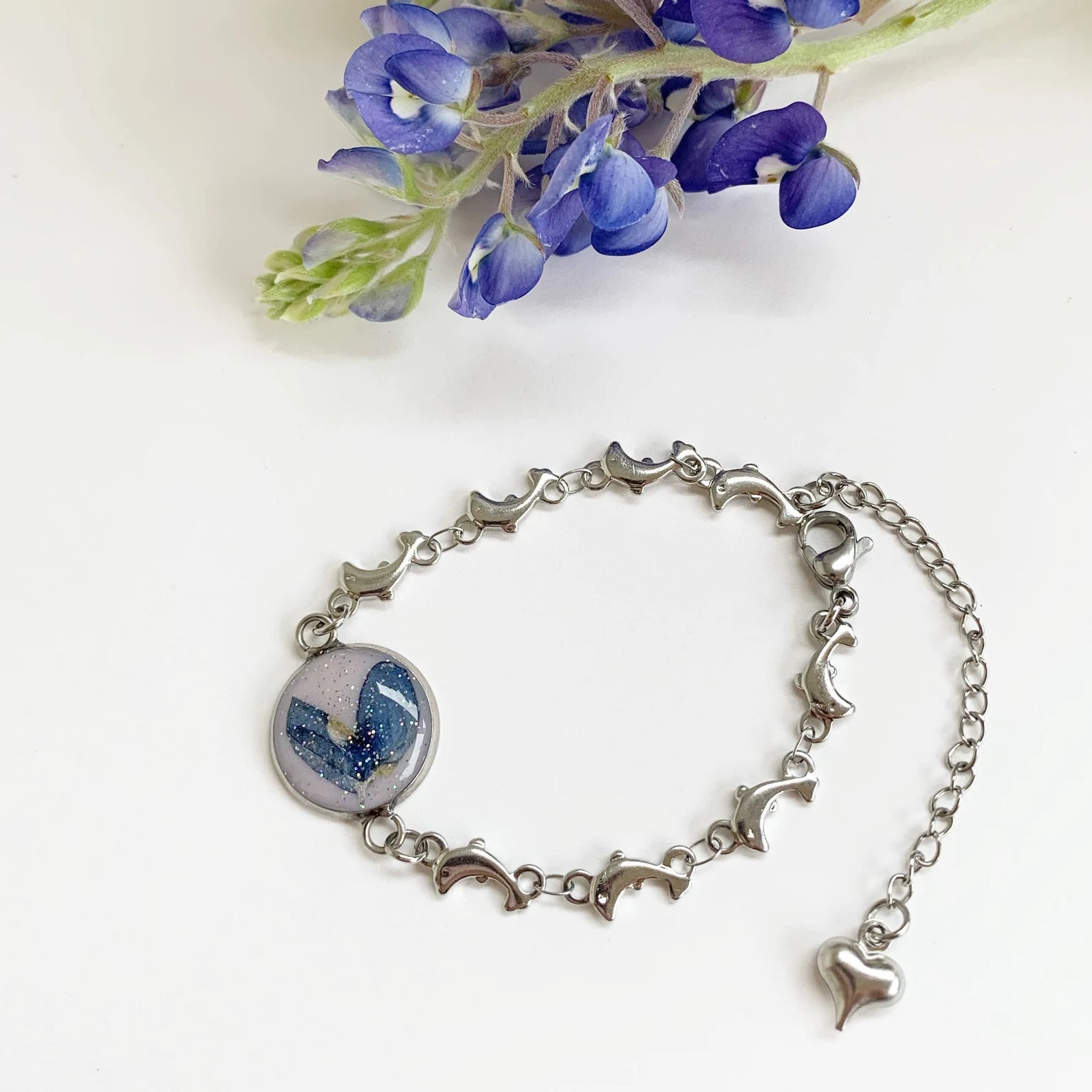 Real Texas Bluebonnet Charm Bracelet, Bluebonnet Bangle, Bluebonnet jewelry, Nature jewelry