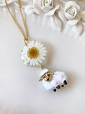 Sheep necklace, Lamb necklace, Real daisy necklace