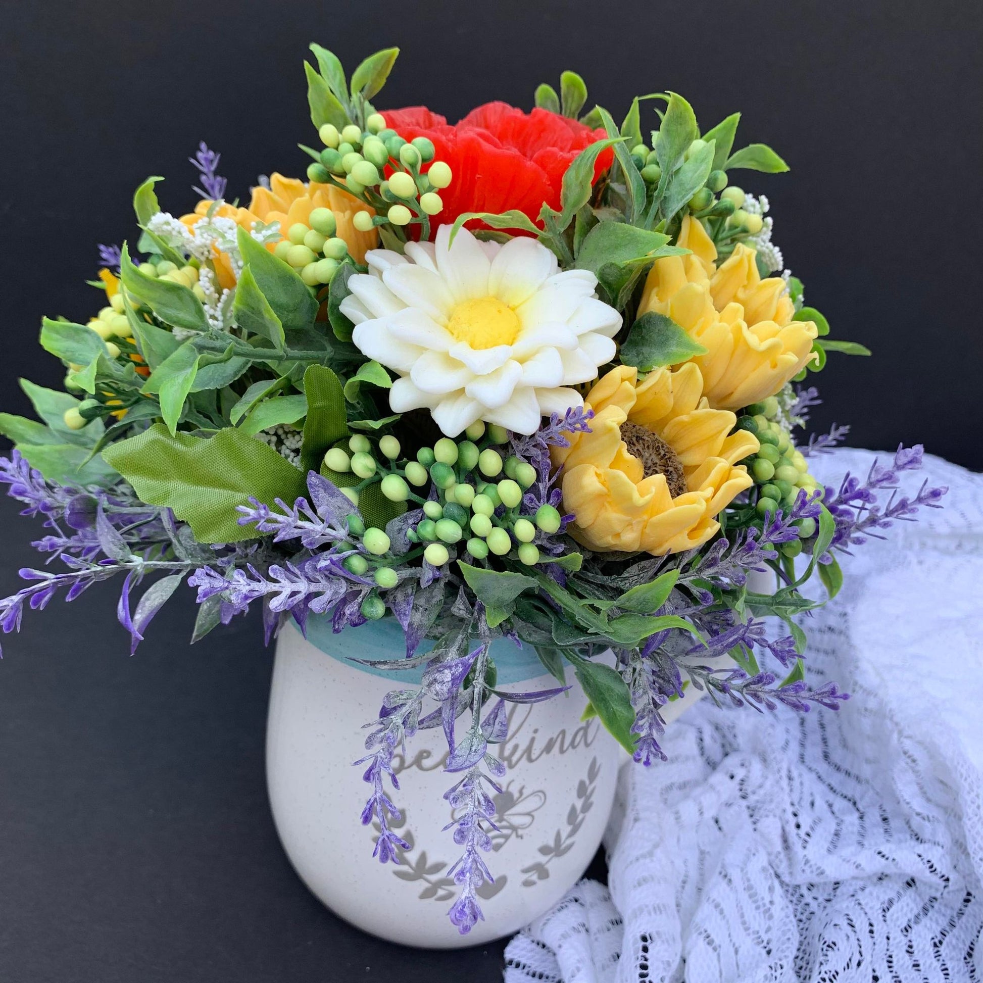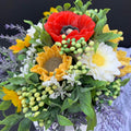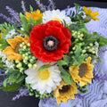 Summer memories: Sunnflower,Popy. Daisy and Lavender flower arrangement